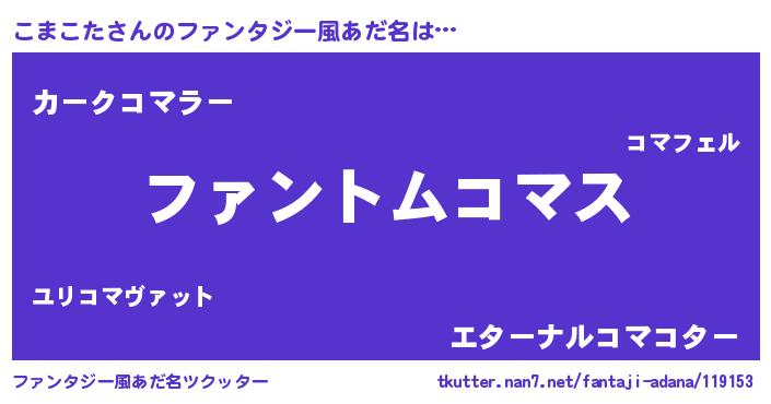 | ヒーロー風カッコイイあだ名 | 『銀牙騎士コマ』『ウルトラこまこたマン』 |