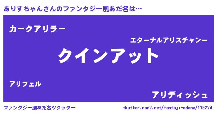 | 女子向けラノベタイトル風あだ名 | 『死神ありすちゃんの再婚』 |