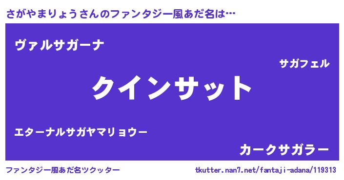 | 男性向けラノベタイトル風あだ名 | 『ノーゲーム・ノーサガヤマリョウ』 |
