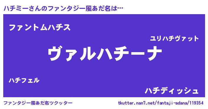 | 男性向けラノベタイトル風あだ名 | 『この素晴らしい世界にハチミーを!』 |