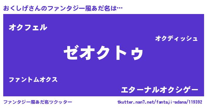 | 男性向けラノベタイトル風あだ名 | 『Re:おくしげから始める異世界生活』 |