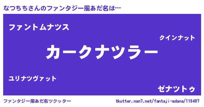 | ヒーロー風カッコイイあだ名 | 『幻影騎士ナツ』『ウルトラ戦士ナツチチ』 |