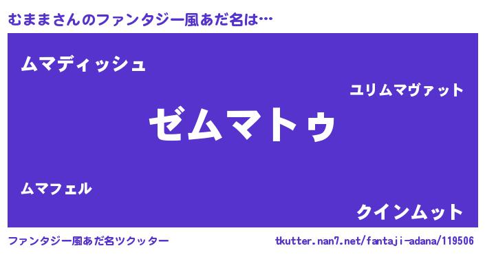 | 意味不明あだ名 | 『自称むまま』『永久保存むまま』 |