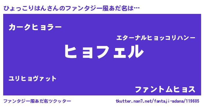 | 2回繰り返すあだ名 | 『ひょひょ』『ちゅるちゅる』 |