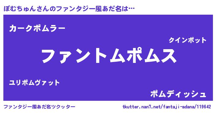 | 男性向けラノベタイトル風あだ名 | 『ぽむちゅんの嫁は女の子じゃないと思った?』 |