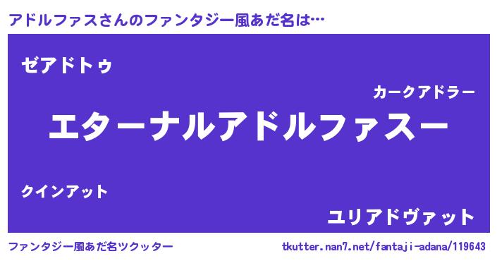 | 男性向けラノベタイトル風あだ名 | 『やはりアドルファスの青春ラブコメはまちがっている 』 |