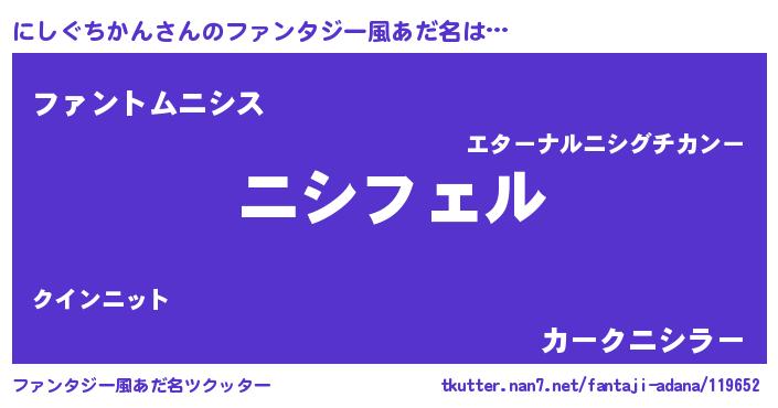 | 男性向けラノベタイトル風あだ名 | 『にしぐちかんの憂鬱』 |