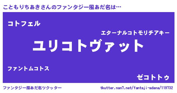 | 男性向けラノベタイトル風あだ名 | 『転生したらこともりちあきだった件』 |
