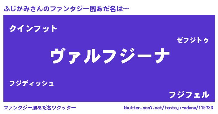 | 男性向けラノベタイトル風あだ名 | 『魔弾の王とふじかみ』『ふじかみの憂鬱』 |