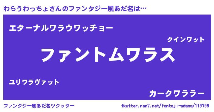 | 男性向けラノベタイトル風あだ名 | 『わらうわっちょの嫁は女の子じゃないと思った?』 |