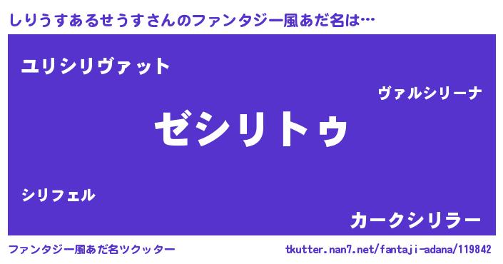 | 意味不明あだ名 | 『自称しりうすあるせうす』 |