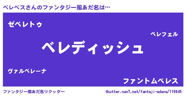 | ポケモン風あだ名 | 『ゼニベレ』『ベレセウス』 |