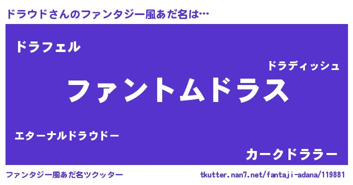 | 男性向けラノベタイトル風あだ名 | 『ダンジョンにドラウドを求めるのは間違っているだろうか』 |