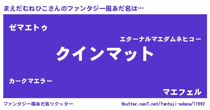 | 女子向けラノベタイトル風あだ名 | 『死神まえだむねひこの再婚』 |