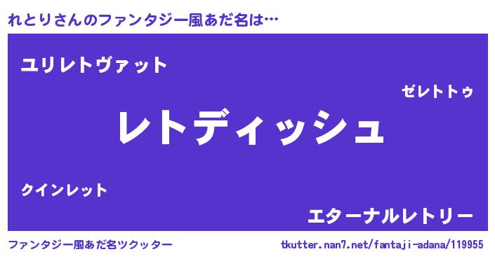 | 男性向けラノベタイトル風あだ名 | 『れとりに滅ぼされるだけの簡単なお仕事です』 |