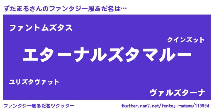 | ポケモン風あだ名 | 『ズタマダネ』『ズタゴンZ』 |