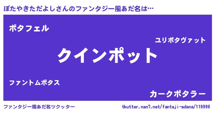 | 女子向けラノベタイトル風あだ名 | 『ぽたやきただよし恋絵巻』 |