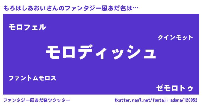| ヘコむあだ名 | 『もろはしあおい(爆)』『もろにゅー』 |