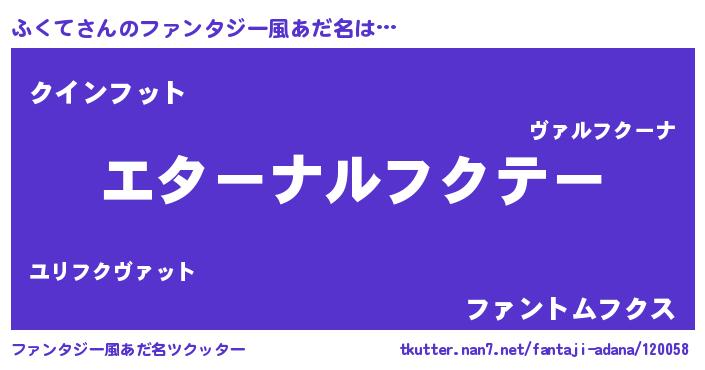 | 女子向けラノベタイトル風あだ名 | 『ふくての雑貨屋さん』『ふくて恋絵巻』 |