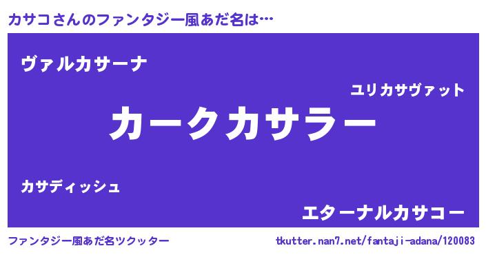 | 男性向けラノベタイトル風あだ名 | 『うちのカサコが世界を掌握している!』 |