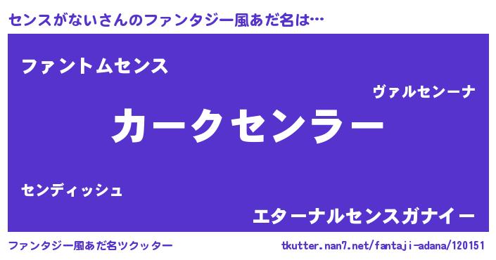 | 男性向けラノベタイトル風あだ名 | 『緋弾のセンスガナイ』 |