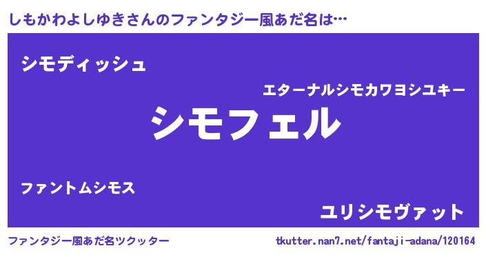 | 胡散臭い通販商品みたいなあだ名 | 『億万長者になれるブレスレット…その名も「しもかわよしゆき」』 |