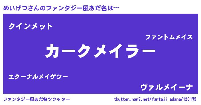 | 欧米人風あだ名 | 『めいげつ・ステッグマイヤー』 |