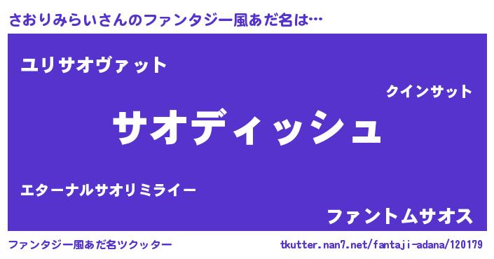| 男性向けラノベタイトル風あだ名 | 『さおりみらいという概念が存在しない退屈な世界 』 |