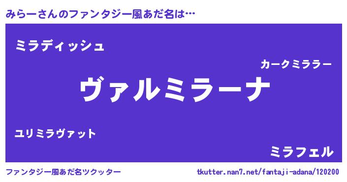 | 意味不明あだ名 | 『住所不定無職みらー(7歳)』 |