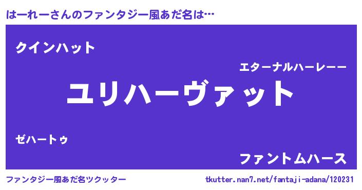 | 男性向けラノベタイトル風あだ名 | 『ハーレースレイヤー』 |