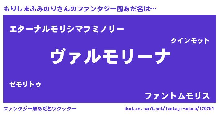 | 女子向けラノベタイトル風あだ名 | 『乙女ゲームの破滅フラグしかない悪役もりしまふみのりに転生してしまった…』 |