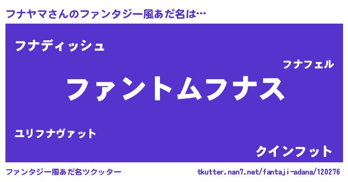 | 男性向けラノベタイトル風あだ名 | 『ダンジョンにフナヤマを求めるのは間違っているだろうか』 |