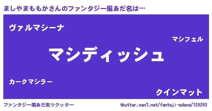 | 女子向けラノベタイトル風あだ名 | 『異世界で失敗しない100のましやまももか』 |