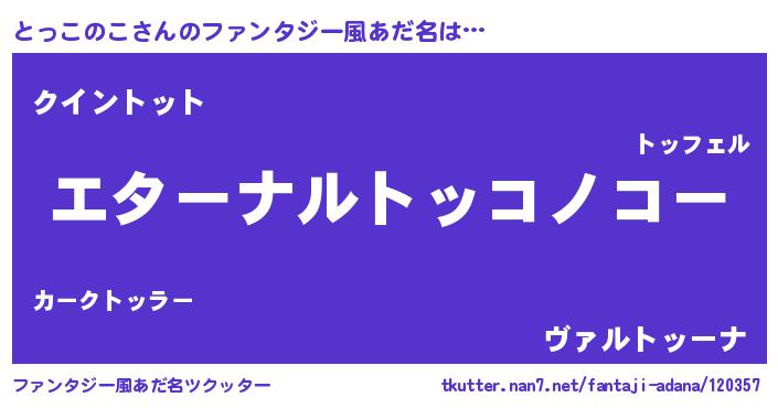 | 意味不明あだ名 | 『とっこのこフォーエバー』 |