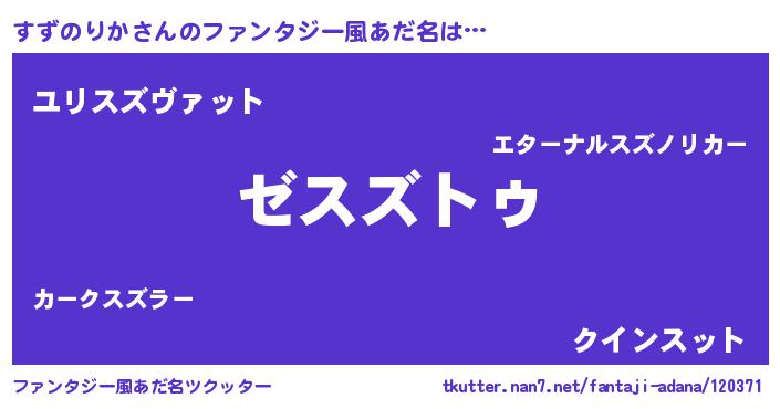 | 男性向けラノベタイトル風あだ名 | 『Re:すずのりかから始める異世界生活』 |