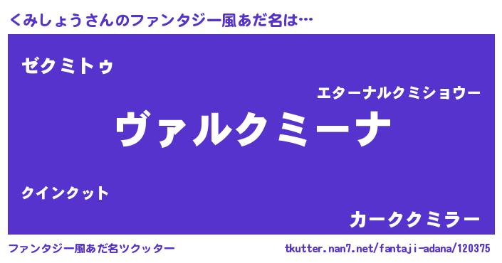 | ヒーロー風カッコイイあだ名 | 『仮面クミダー』『超時空戦士クミショウ』 |