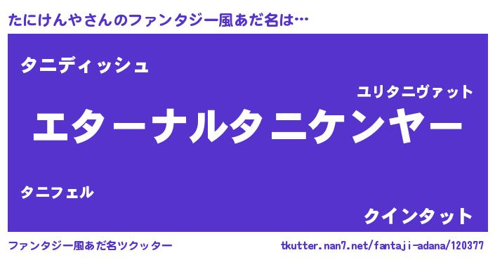 | ポケモン風あだ名 | 『タニケダネ』『ゼニタニ』 |