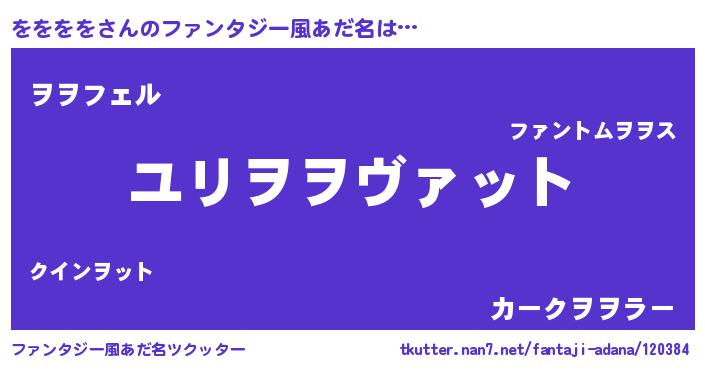 | 自動車の名前っぽいあだ名 | 『ヲールスヲイス』『ヲヲティマ』 |