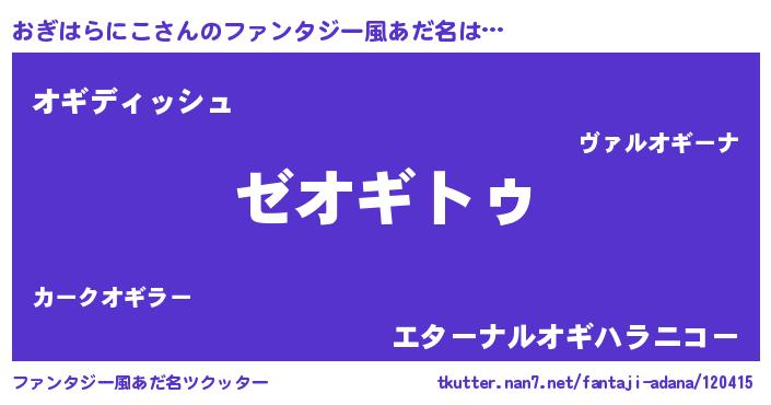 | ポケモン風あだ名 | 『オギセウス』『ゼニオギ』 |