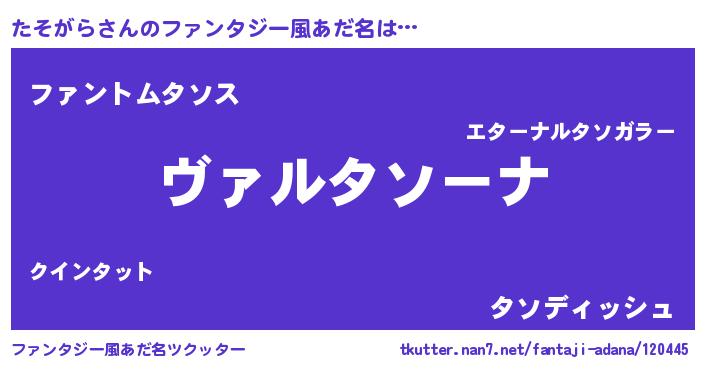 | 男性向けラノベタイトル風あだ名 | 『この素晴らしい世界にたそがらを!』 |