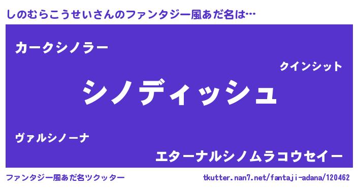 | 男性向けラノベタイトル風あだ名 | 『しのむらこうせいという概念が存在しない退屈な世界 』 |