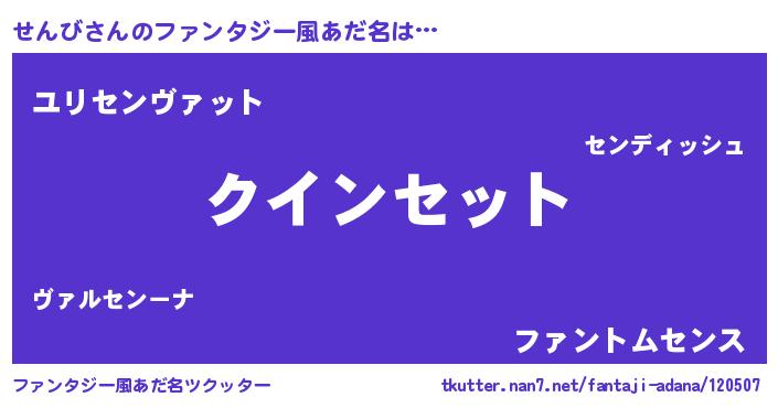 | ヒーロー風カッコイイあだ名 | 『慈愛の使者せんび』『銀牙騎士セン』 |