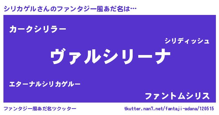 | 女子向けラノベタイトル風あだ名 | 『乙女ゲームの破滅フラグしかない悪役シリカゲルに転生してしまった…』 |