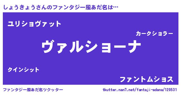 | 男性向けラノベタイトル風あだ名 | 『この素晴らしい世界にしょうきょうを!』 |
