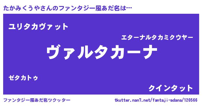 | 女子向けラノベタイトル風あだ名 | 『悪役たかみくうやに転生したようですが、知った事ではありません』 |