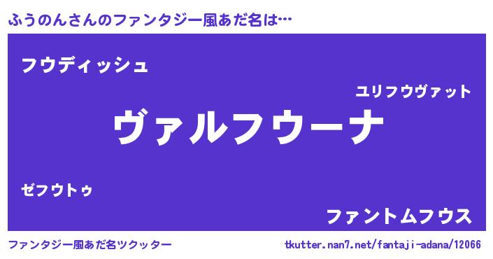 | 男性向けラノベタイトル風あだ名 | 『魔弾の王とふうのん』 |