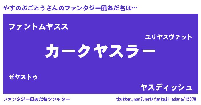 | 男性向けラノベタイトル風あだ名 | 『うちのやすのぶごとうが世界を掌握している!』 |
