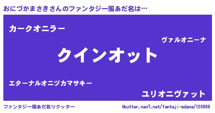 | 男性向けラノベタイトル風あだ名 | 『おまえをオタクにしてやるから、俺をおにづかまさきにしてくれ! 』 |