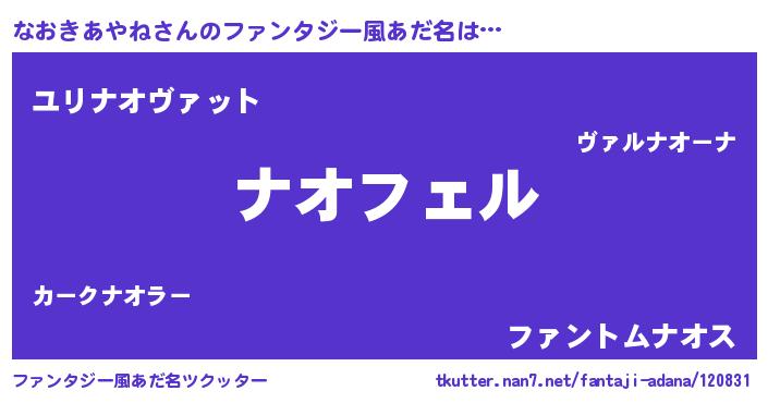 なおきあやねさんのファンタジー風あだ名をツクッター!