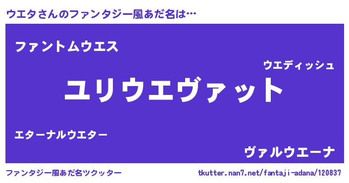 | 男性向けラノベタイトル風あだ名 | 『転生したらウエタだった件』 |